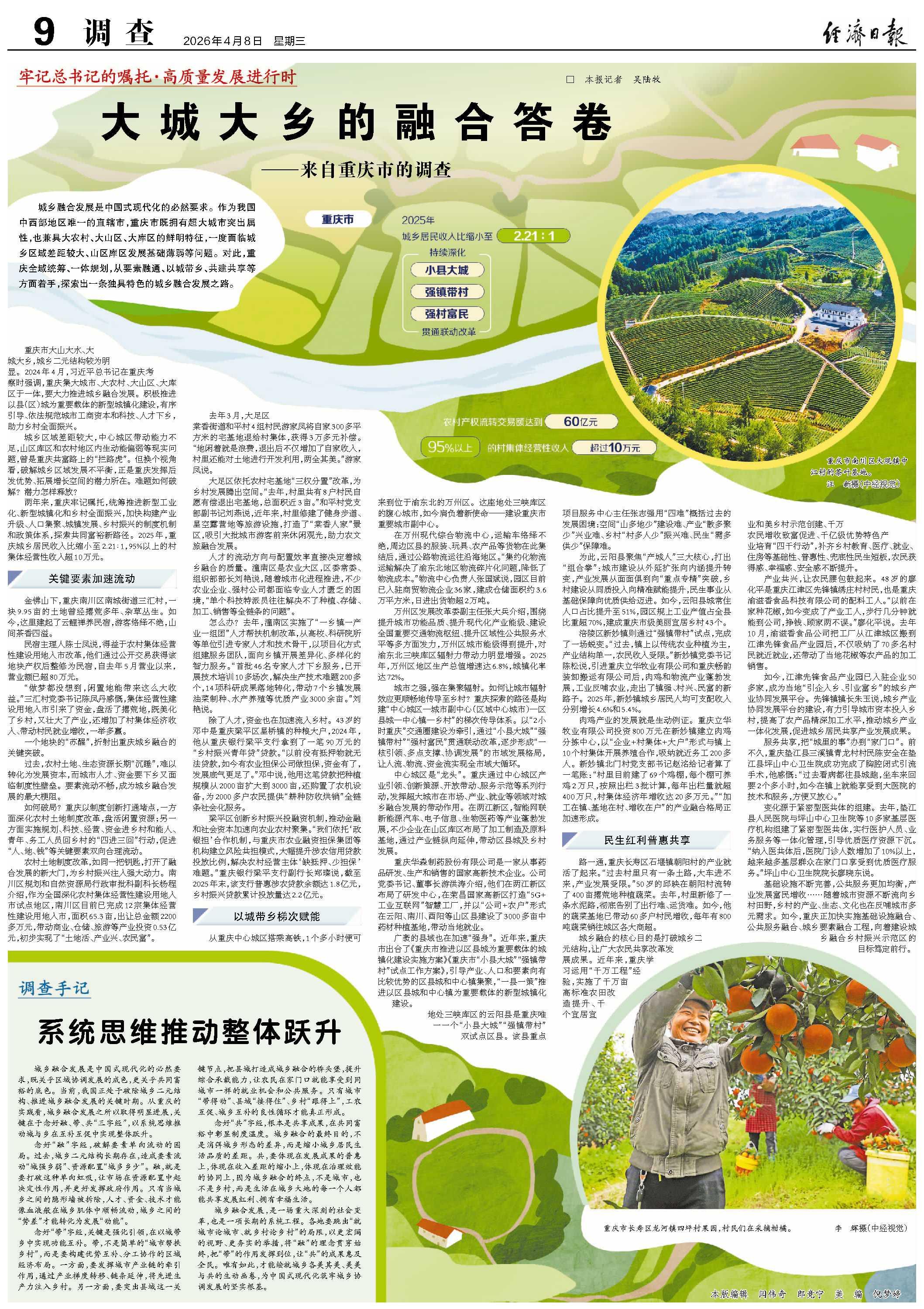 大城大乡的融合答卷——来自重庆市的调查