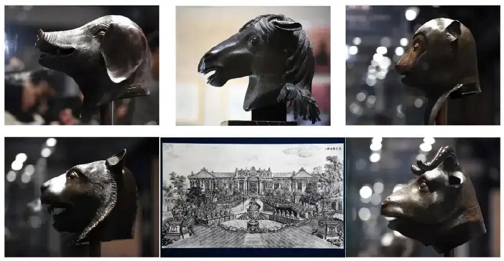 ▲2023年10月18日,圆明园十二兽首之牛首、虎首、猴首、猪首铜像,与此前正式回归圆明园的马首铜像一起,亮相“五首重聚·故园新语”圆明园兽首铜像特别展览。记者 罗晓光 摄/新华社