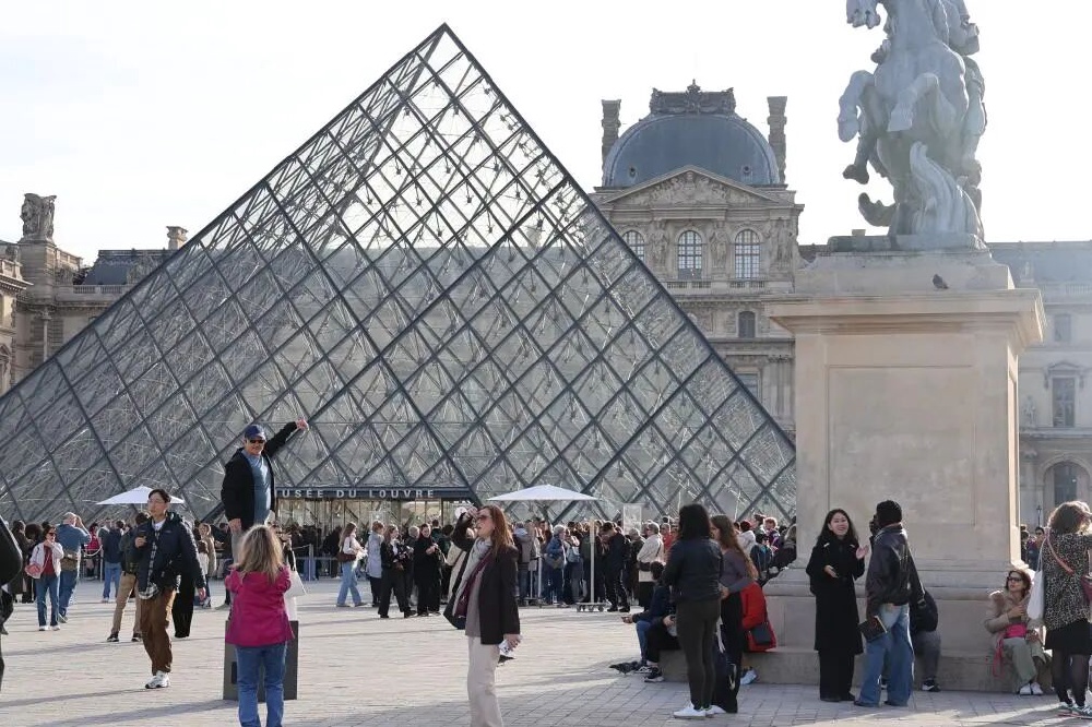 ▲2025年10月22日,在法国巴黎,大量游客聚集在卢浮宫博物馆的玻璃金字塔入口前。记者 张百慧 摄/新华社