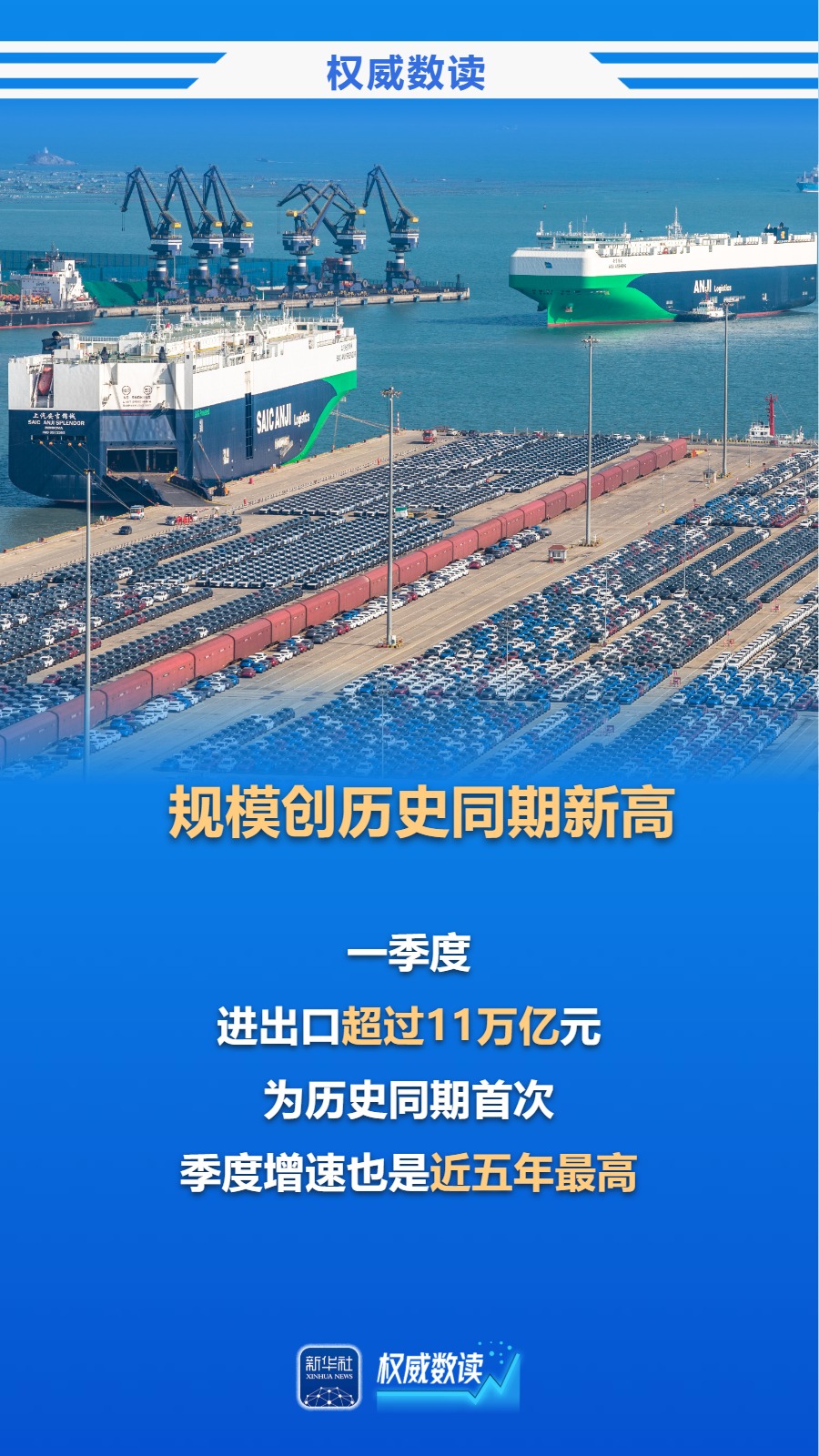 国务院新闻办14日举行新闻发布会,介绍2026年一季度进出口情况。今年一季度,我国货物贸易进出口同比增长15%,达到11.84万亿元,创历史同期新高。今年以来,外部形势更加复杂多变,各地区各部门认真落实更加积极有为的宏观政策,外贸起势有力、开局良好。
