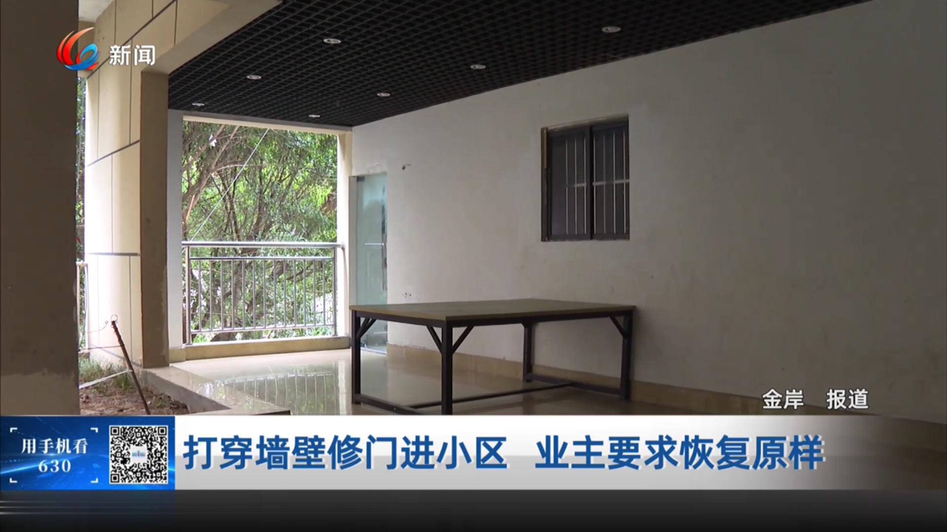 大学城西城湖景小区5栋的居民最近发现,楼下连接门面的一面墙壁被打穿了,还安装上了一扇玻璃门,这个地方没有门禁,没有小区保安,居民们很担心,这样一来,任何人都可以未经许可,进入小区。