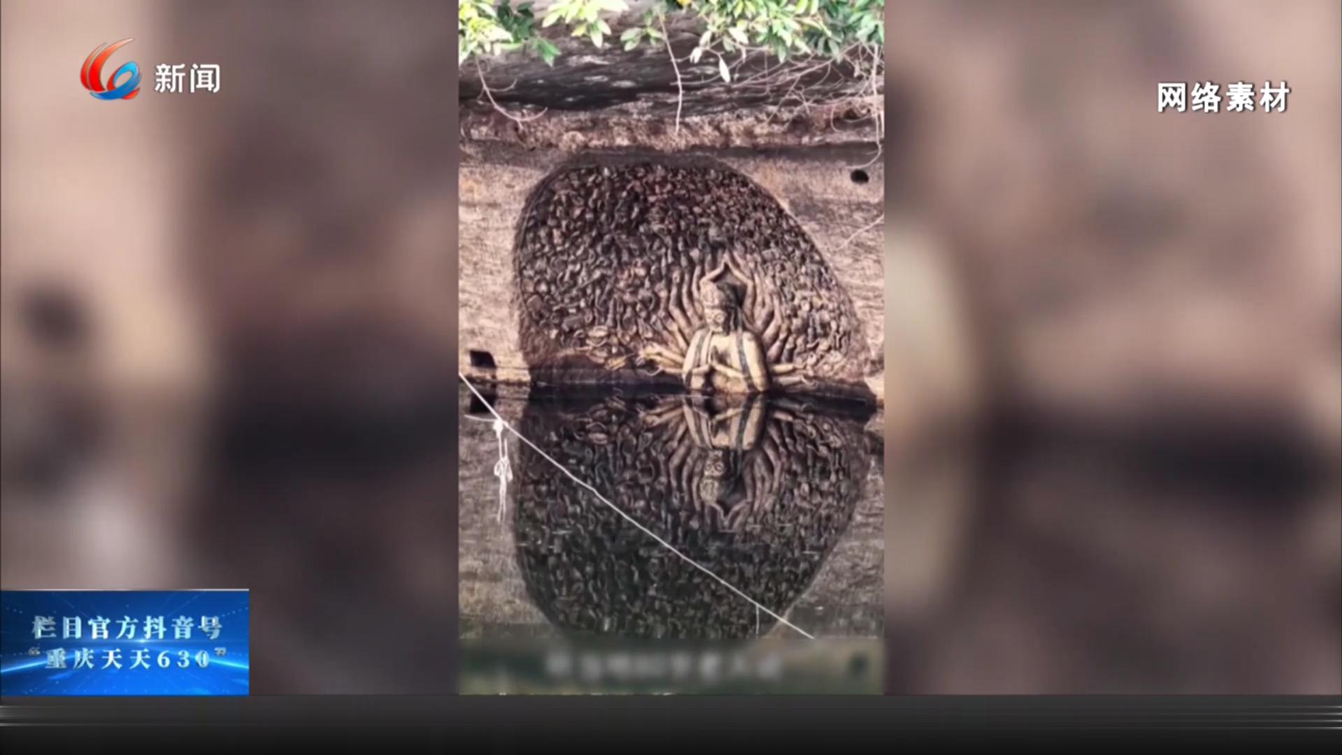 连日来,大足玉滩水库一龛因持续晴少雨、水位下降而露出水面的千手观音造像,经网络传播后迅速引发关注。