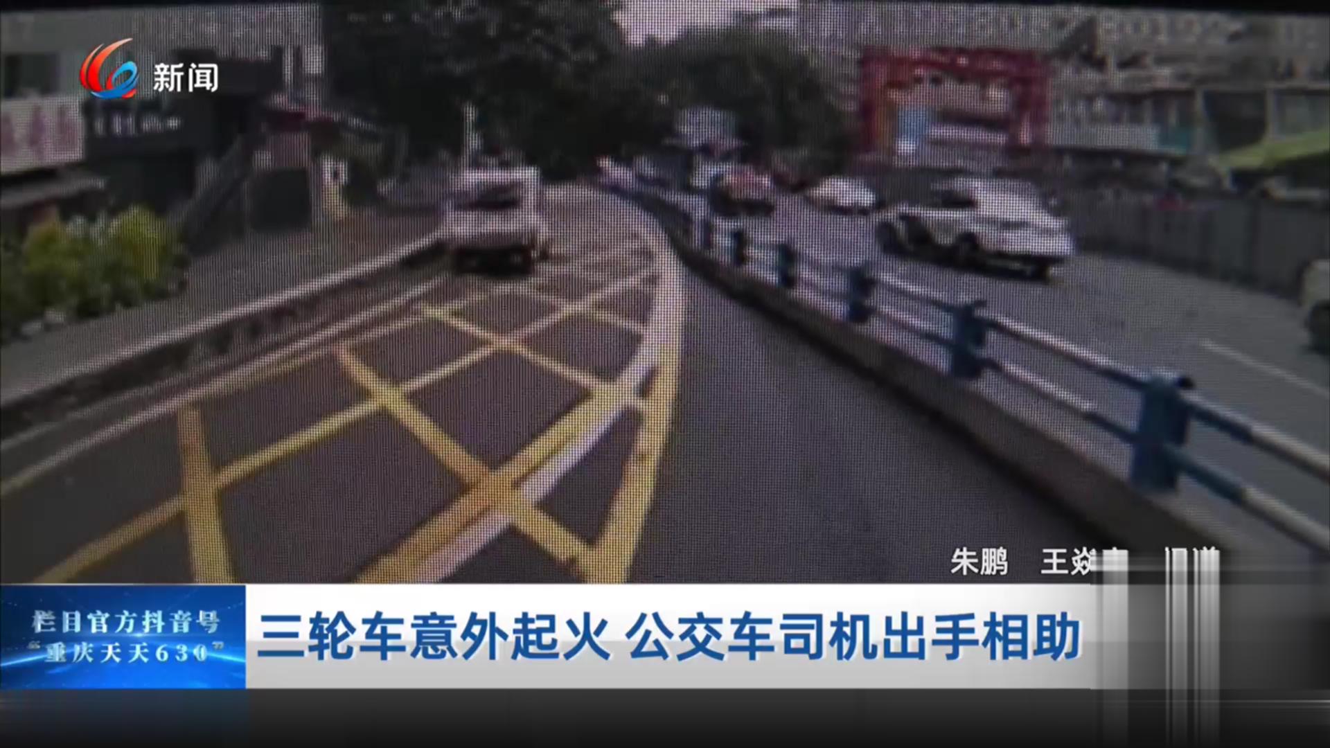 三轮车意外起火 公交车司机出手相助