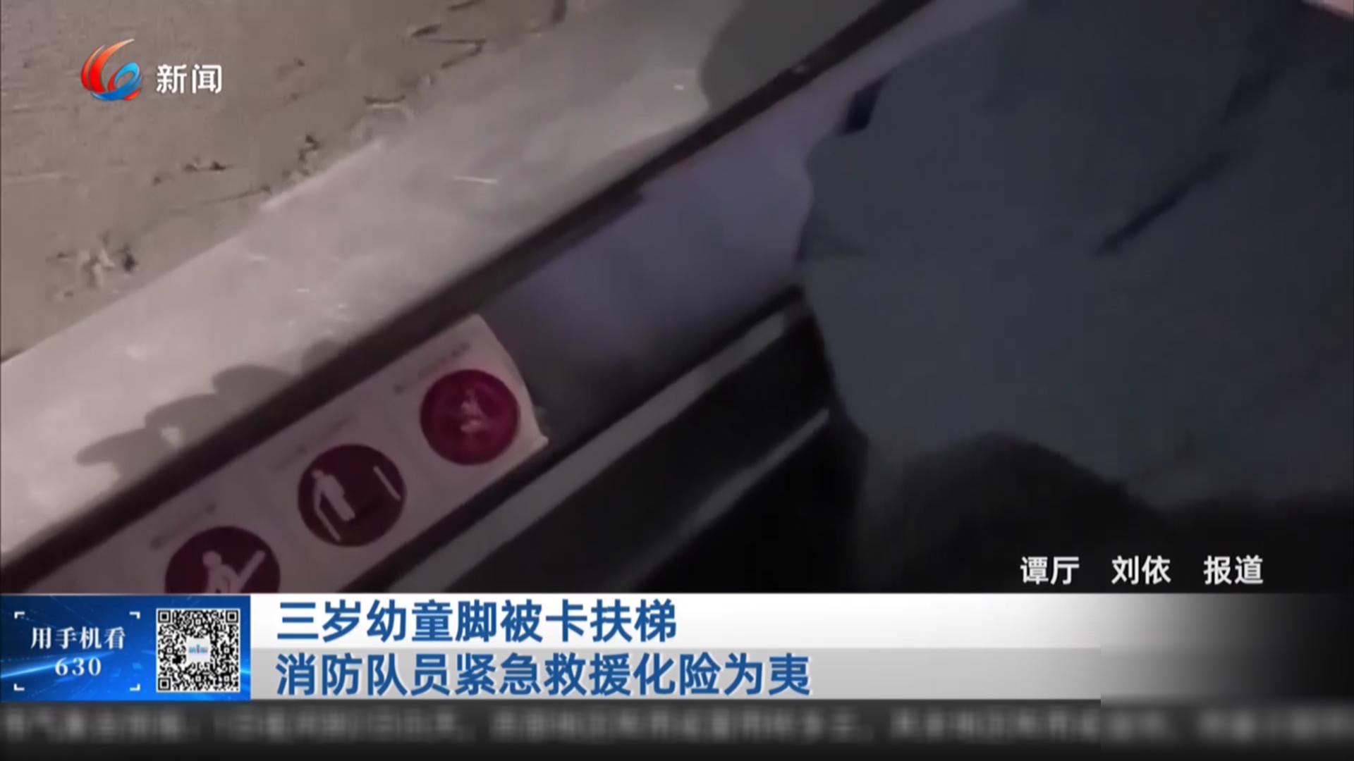 三岁幼童脚被卡扶梯 消防队员紧急救援化险为夷
