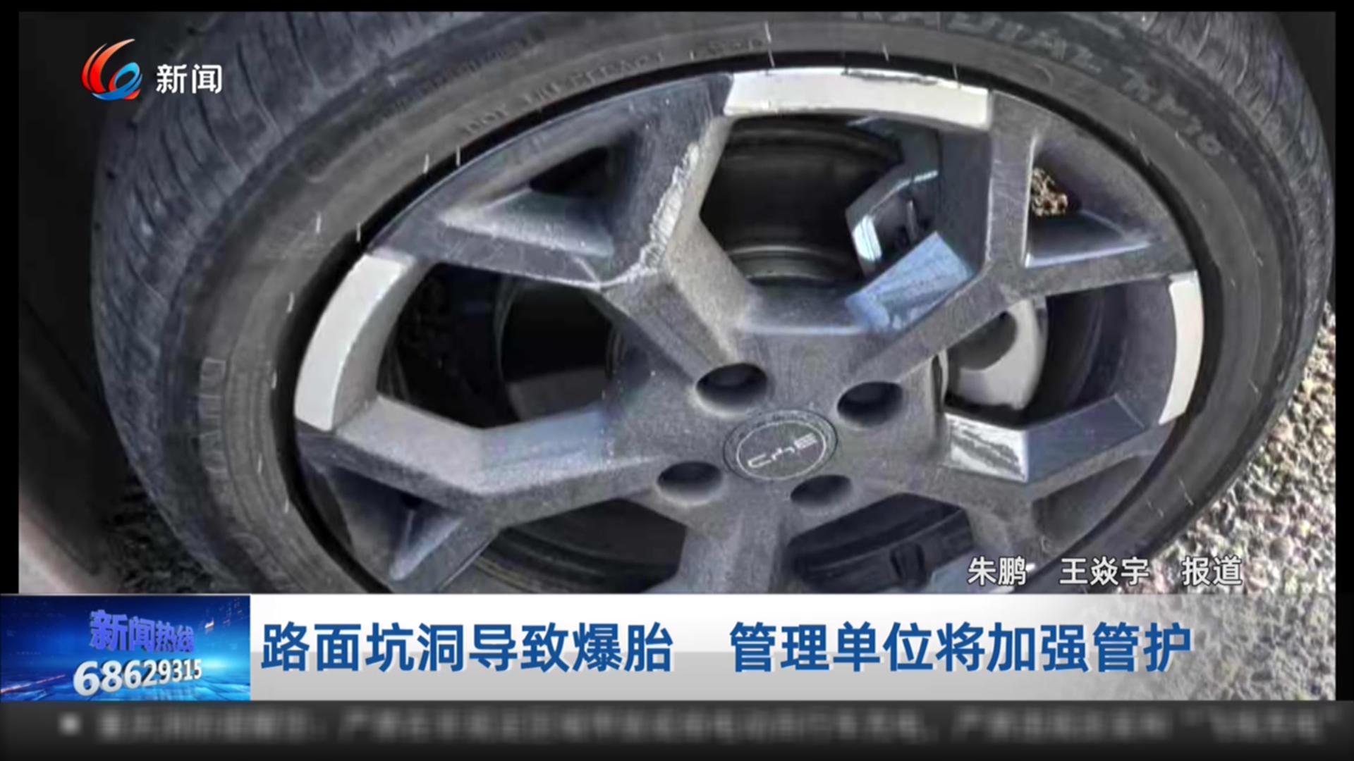 昨天晚上7点,谢先生驾车经过南岸区茶园的一段下坡路面时,路面上的坑洞导致车轮爆胎,在等待救援时,另一辆车也遭遇了爆胎。