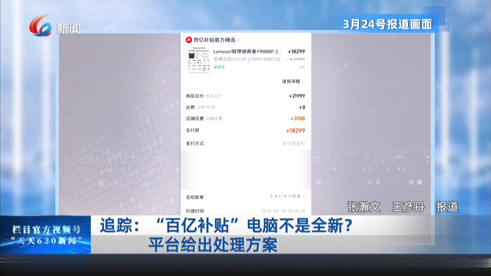 追踪:“百亿补贴”电脑不是全新? 平台给出处理方案
