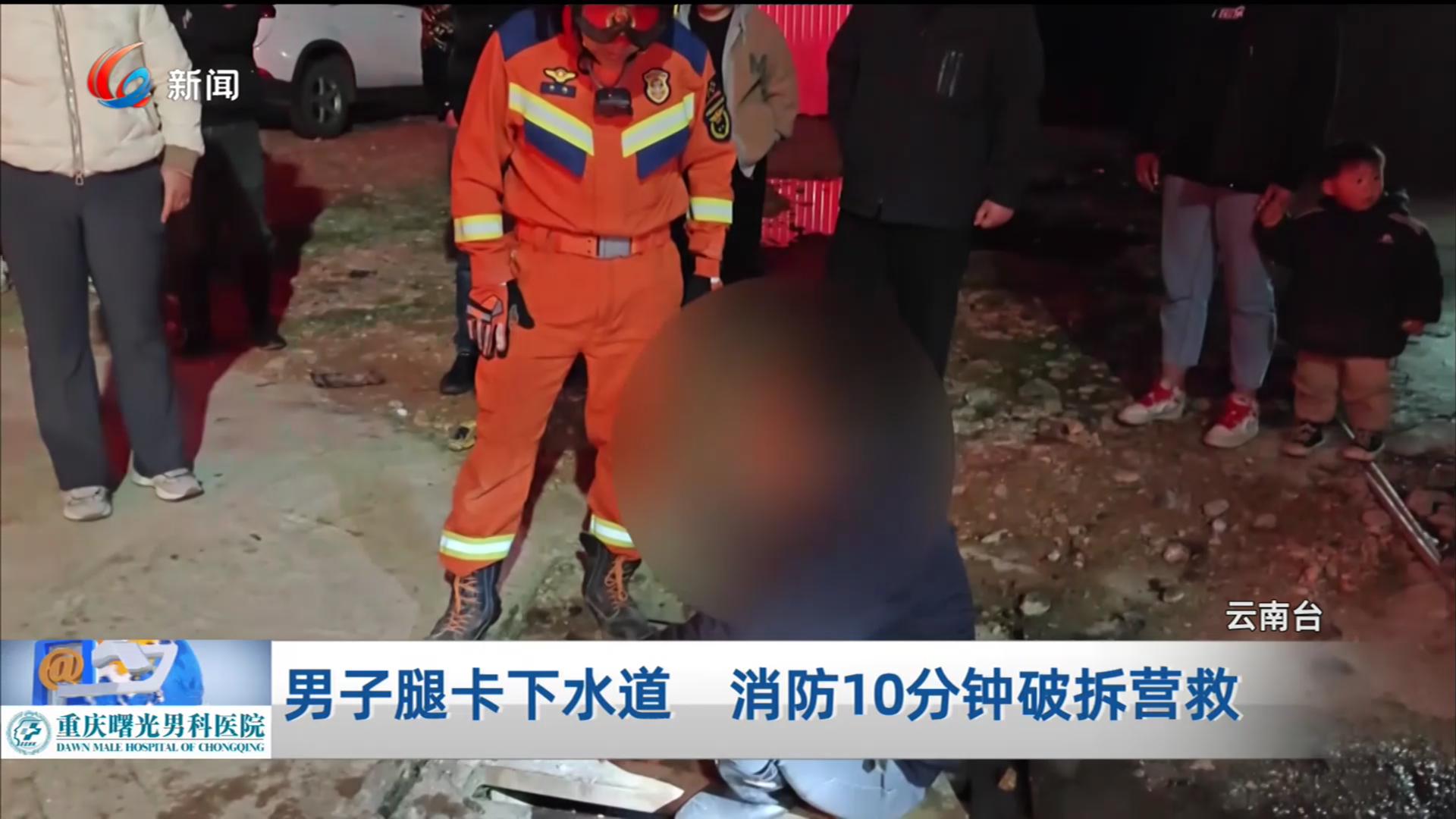 男子腿卡下水道 消防10分钟破拆营救
