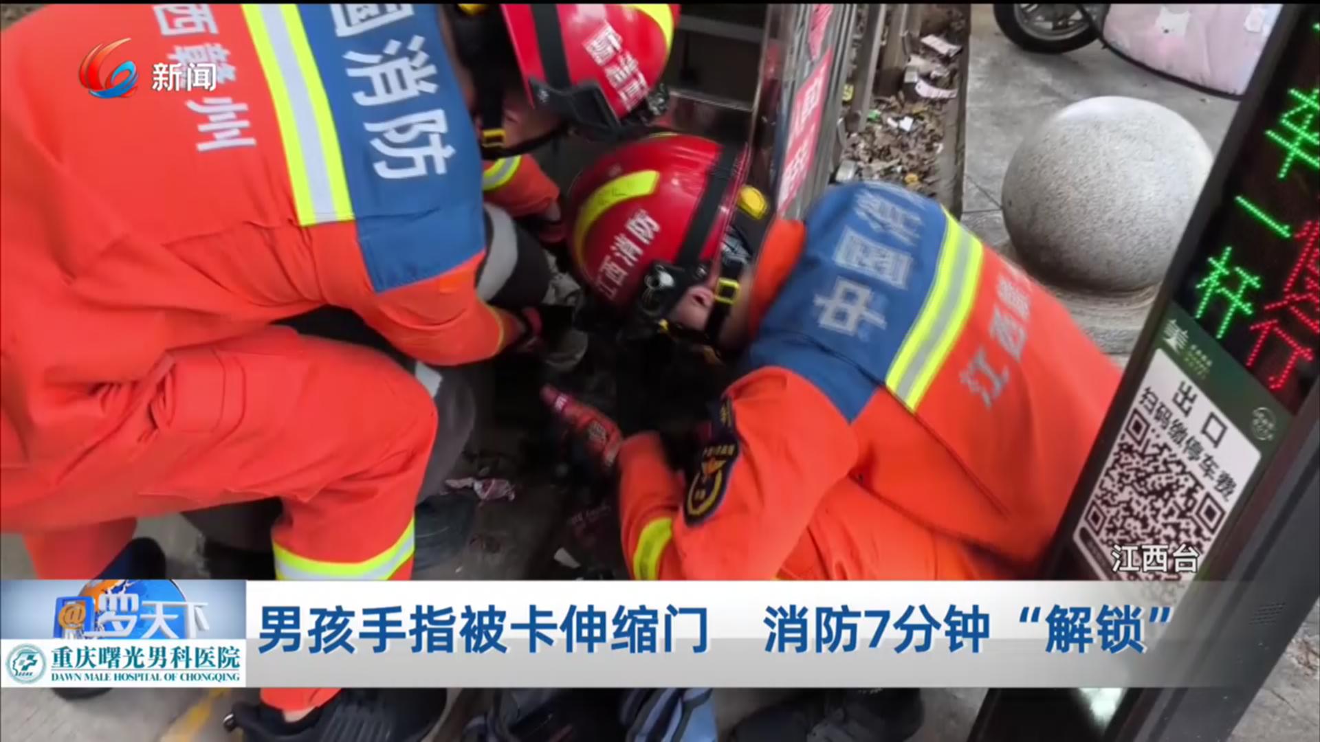 男孩手指被卡伸缩门 消防7分钟“解锁”