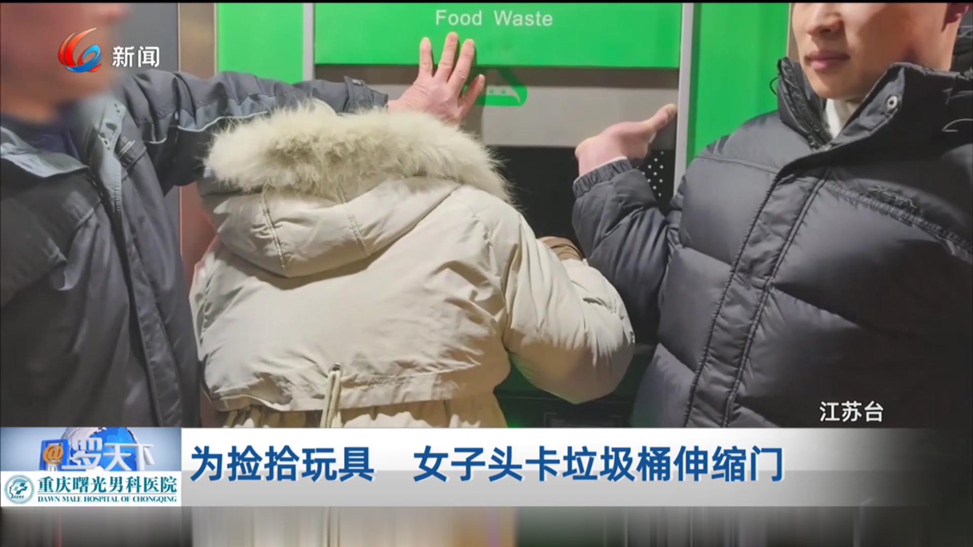上周,江苏宿迁市一名女子为帮孩子寻找丢失的玩具,在翻找智能垃圾桶时,头部不慎被伸缩门卡住,热心市民急忙求助消防救援人员。