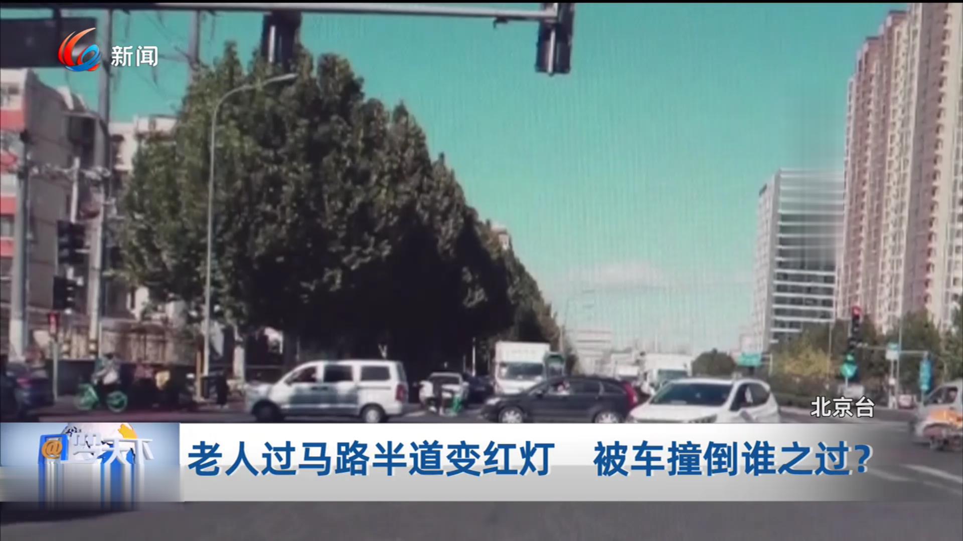 老人过马路半道变红灯 被车撞倒谁之过?