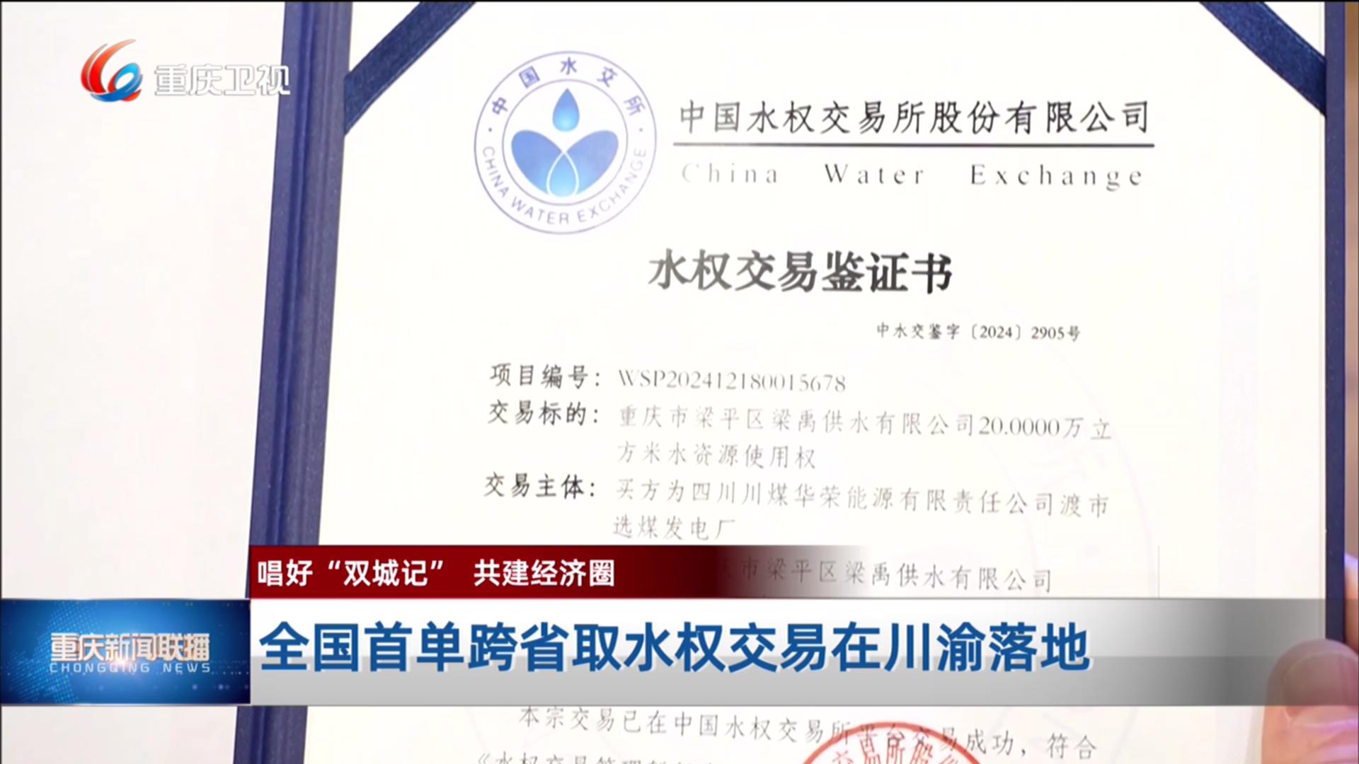 12月24日,重庆市梁平区供水企业与四川省达州市达川区两家企业签订了取水权交易协议,标志着全国首单跨省取水权交易在川渝落地。