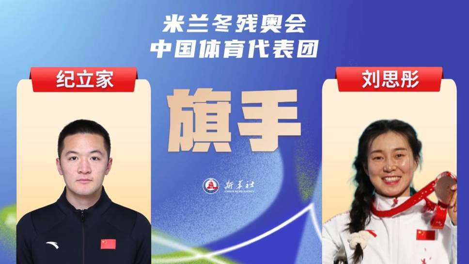 中国体育代表团5日宣布,女子高山滑雪运动员刘思彤和男子单板滑雪运动员纪立家将担任米兰冬残奥会开幕式中国体育代表团旗手。