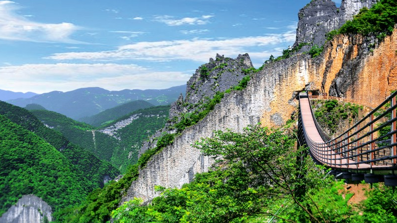 一墙千仞凌绝,一壁享誉天下。站在涪陵区武陵山大裂谷景区的天门洞索桥上,脚下是百丈深谷,耳边尽是风声。