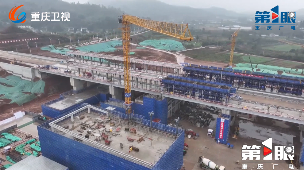 成渝中线高铁大足石刻站站房混凝土主体结构实现全面封顶