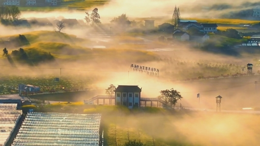 春日晨曦,薄雾如纱漫过田垄,鎏金晨光倾洒在垫江毕桥村的油菜花海,铺展成渝东大地最温柔的春日诗行。