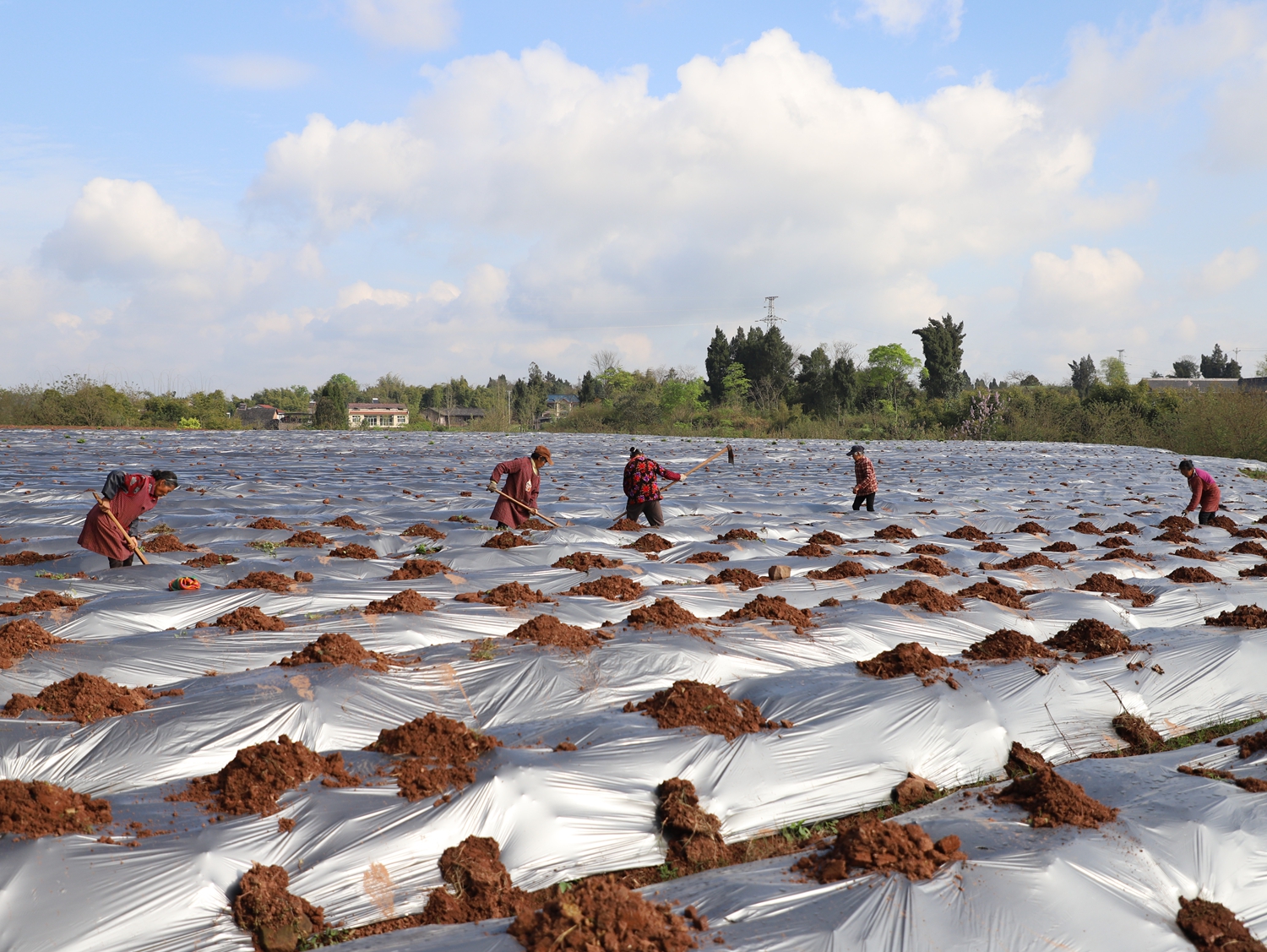 大足:小葛根“闯”世界 土货变身“金疙瘩” 仲春时节,大足区智凤街道千亩富葛种植基地里,20余名工人三两一组,拉膜压土、扶苗栽种、浇水施肥……一派繁忙的春耕景象。