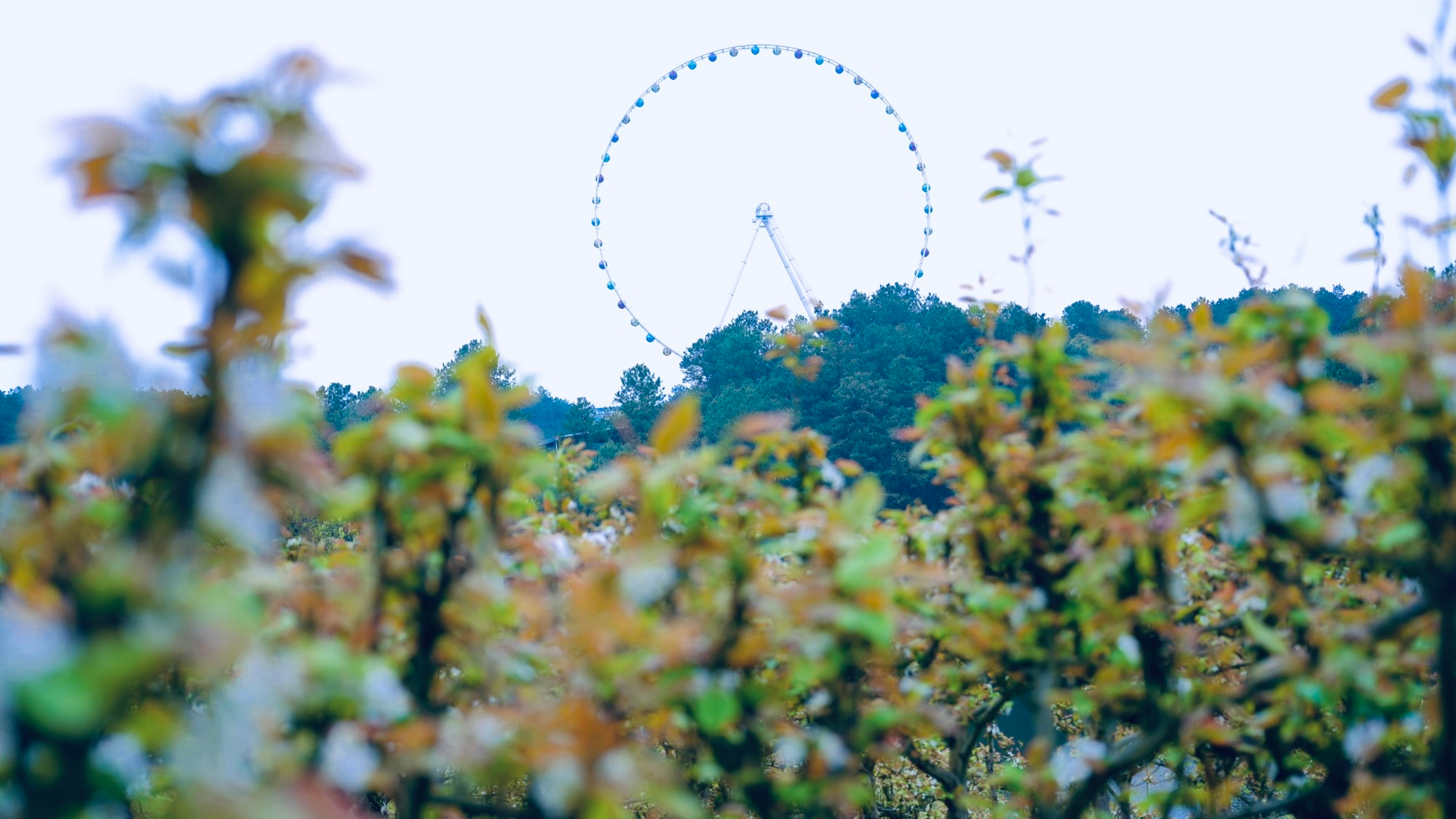 春染涪陵,梨园水碧。在美心红酒小镇,一幅灵动的生态画卷正徐徐铺展:碧波荡漾的梨园水库之畔,摩天轮静静矗立,湖边的树林之巅,成群的苍鹭或伫立枝头,或振翅飞扬,与远处的现代游乐设施相映成趣,绘就人与自然和谐共生的诗意景致。