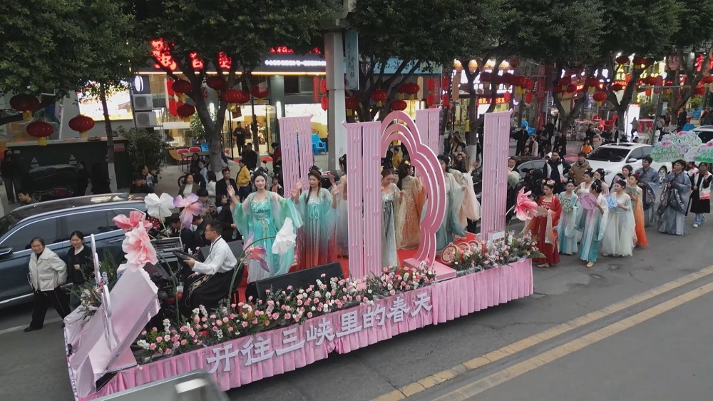 3月8日,“花神送春”花车巡游亮相巫山县宁江路。作为第八届长江三峡(巫山)李花赏春季的重磅预热活动,“花神送春”花车巡游以巫山神女的千年文化为魂,为八方游客送上春日的第一份浪漫邀约。